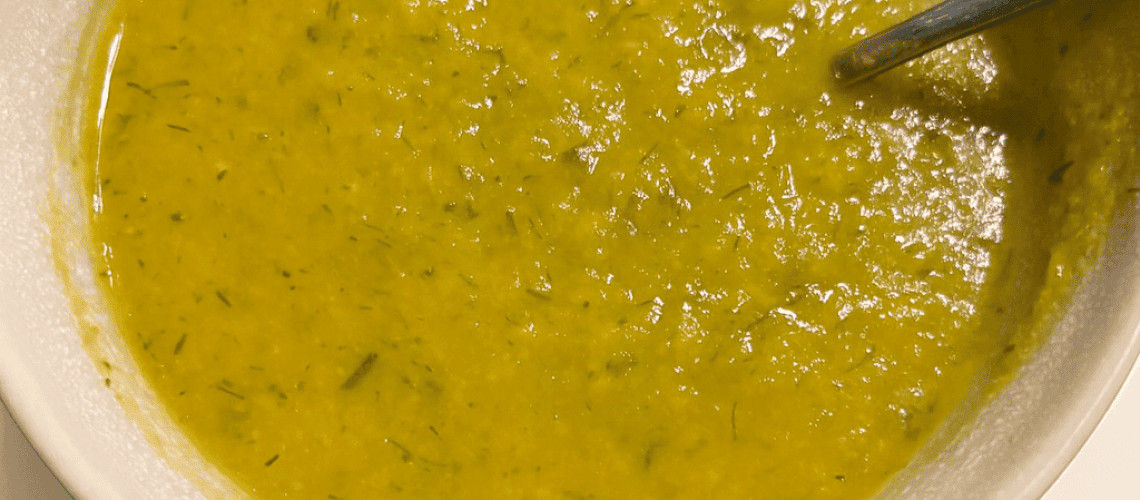 Voeg de inhoud van de koekenpan toe aan de soeppan en pureer alles goed met een staafmixer. Voeg daarna pas de linzen toe aan het geheel, zodat de soep een ‘bite’ heeft. Het is beter als er een ‘bite’ blijft, want door het kauwen verbeter je de opname van alle voedingsstoffen.