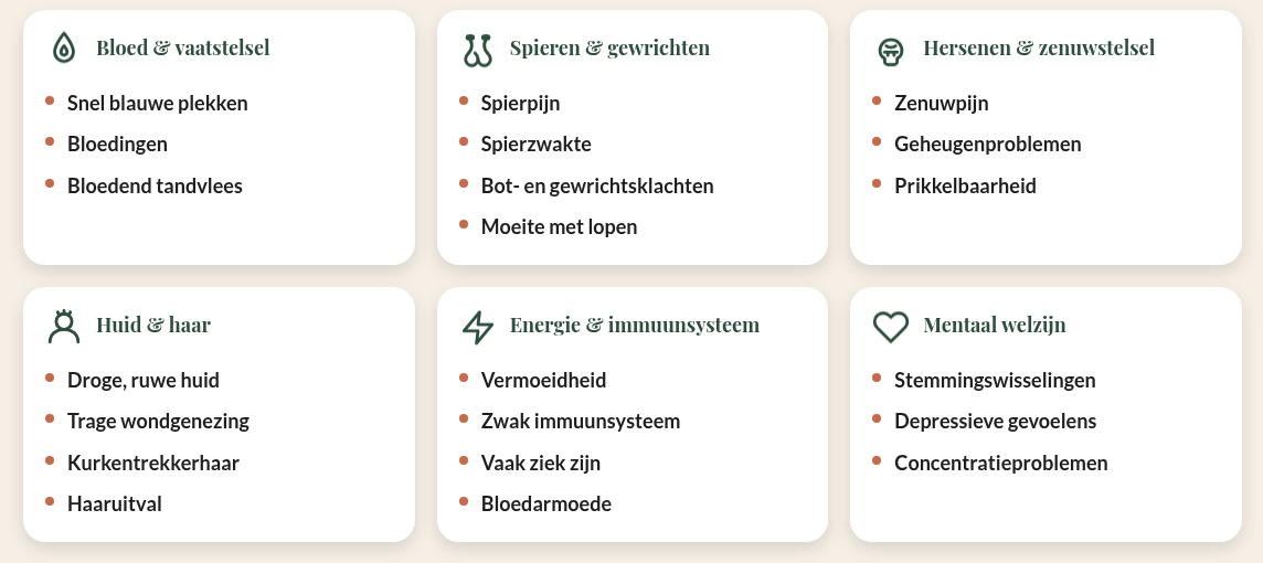 Wat zijn de symptomen van een vitamine C tekort?