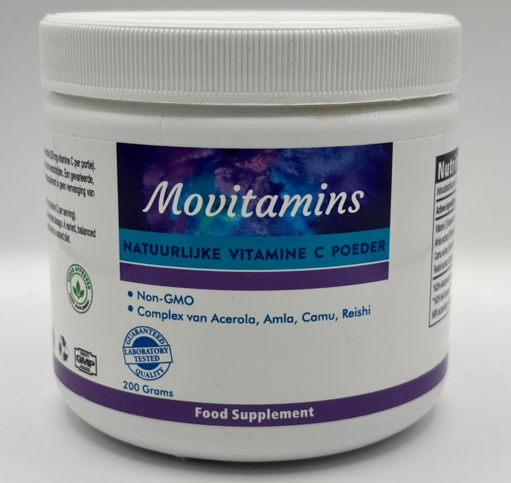Hieronder tref je de natuurlijke vitamine C aan in onze webshop die mijn voorkeur heeft. Deze bestaat uit een blend van verschillende natuurlijke stoffen als: acerola, amla en camu camu bessen en bevat 250 mg per schep. Klik hier of op het plaatje hieronder voor meer info over dit supplement.